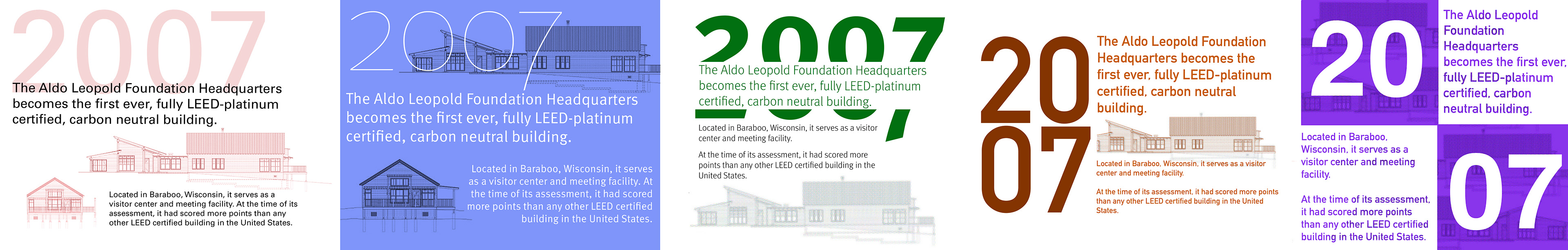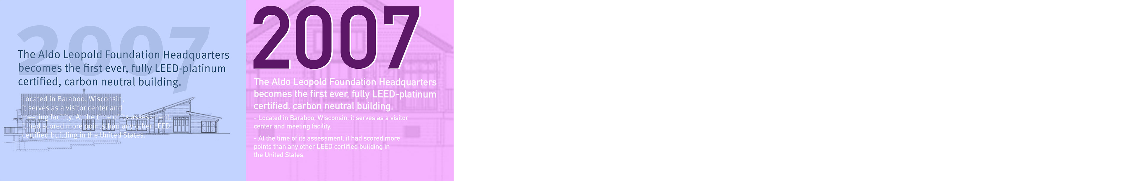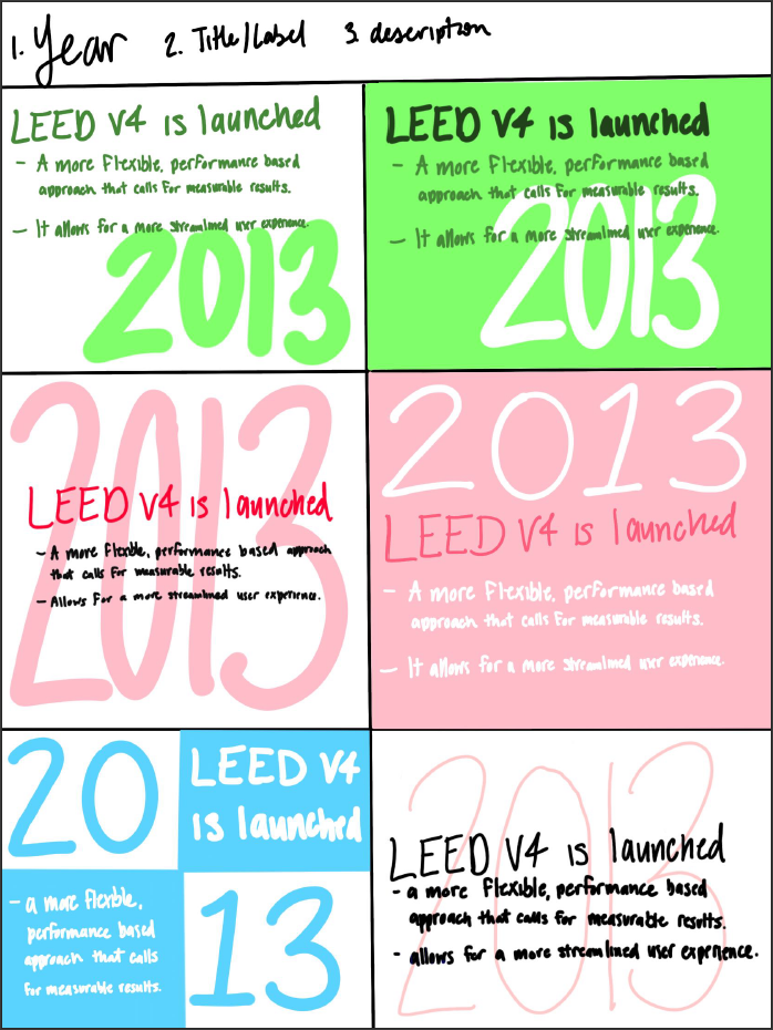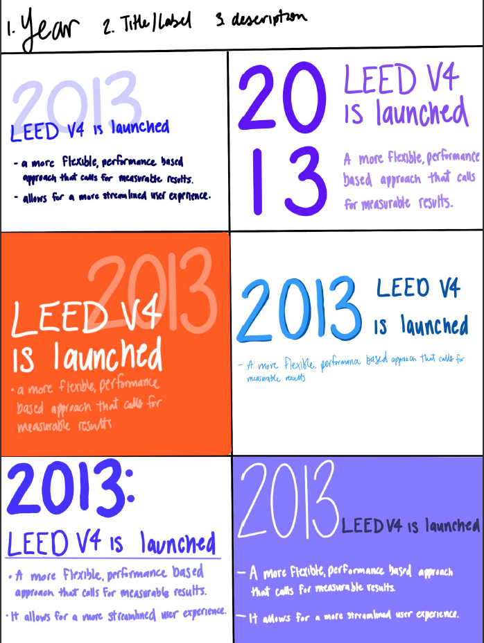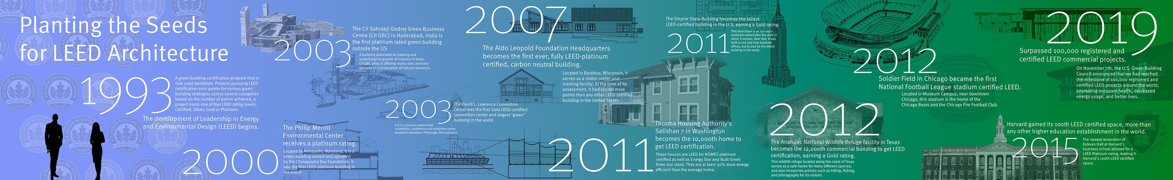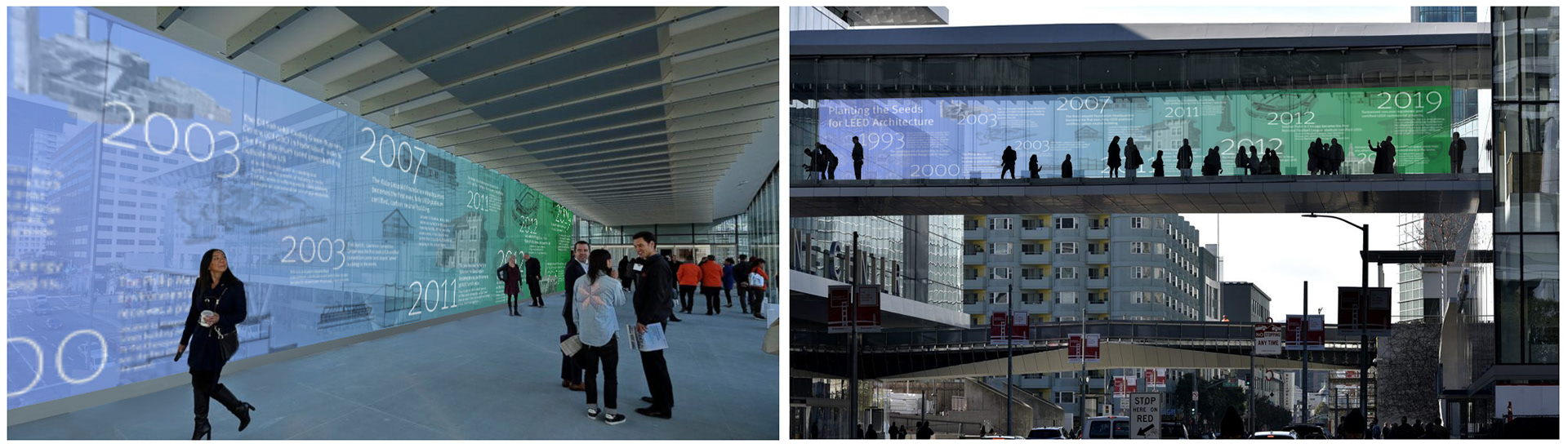 Creating a timeline that displays the various milestones of LEED architecture since its development. It is designed to be displayed in the pedestrian bridge at the Moscone Center in San Francisco, California.